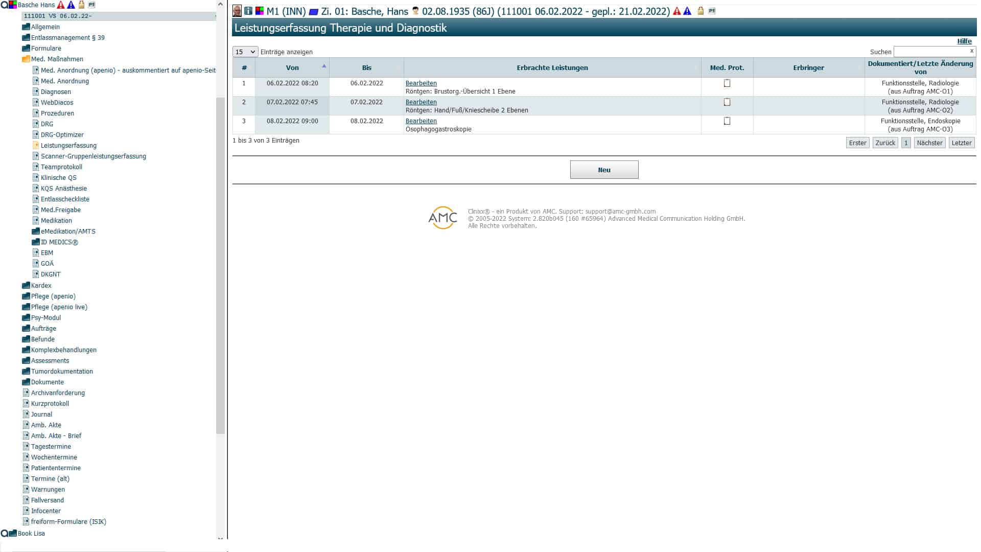 • Medical service entry via neutral in-house service catalog