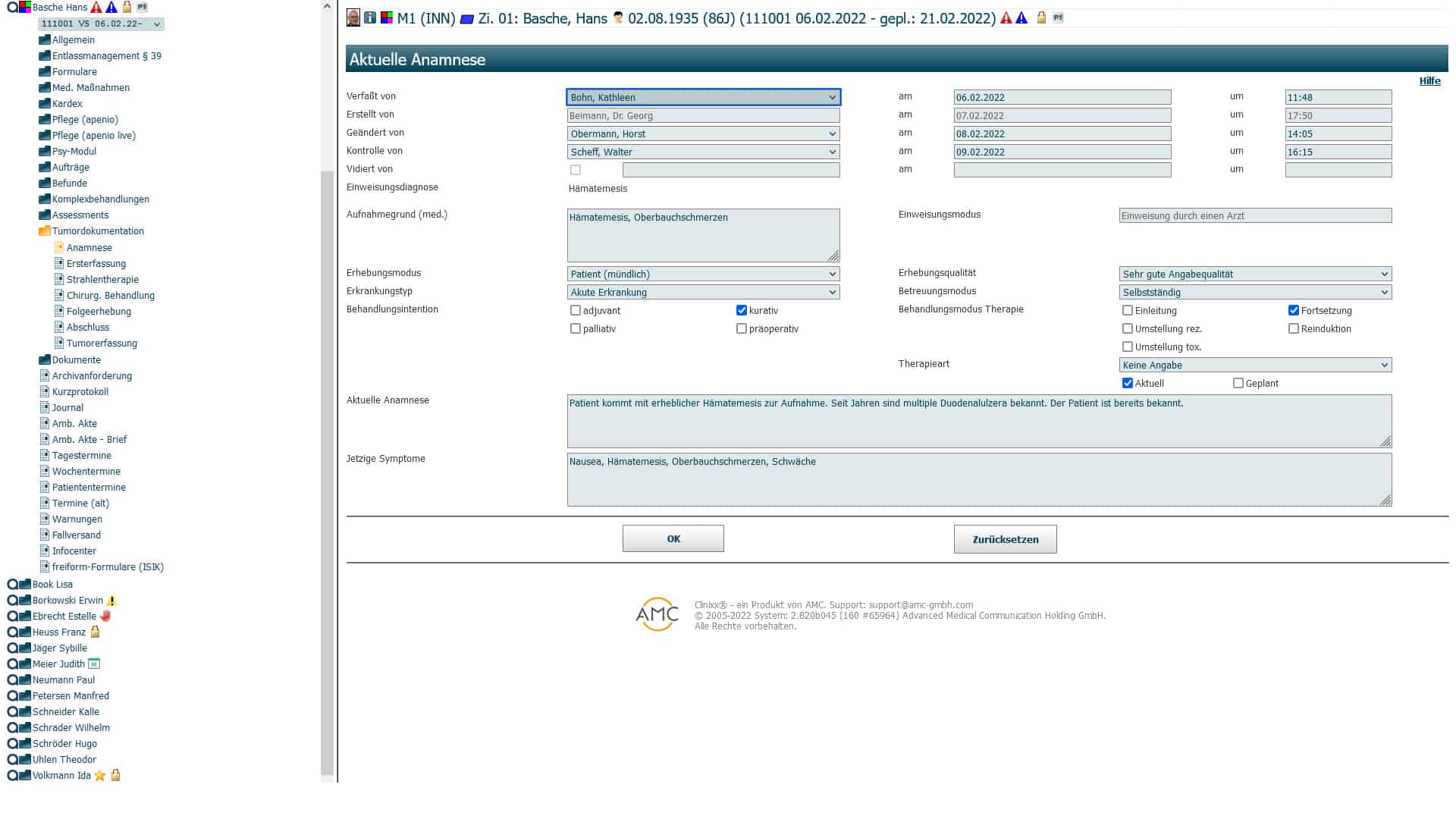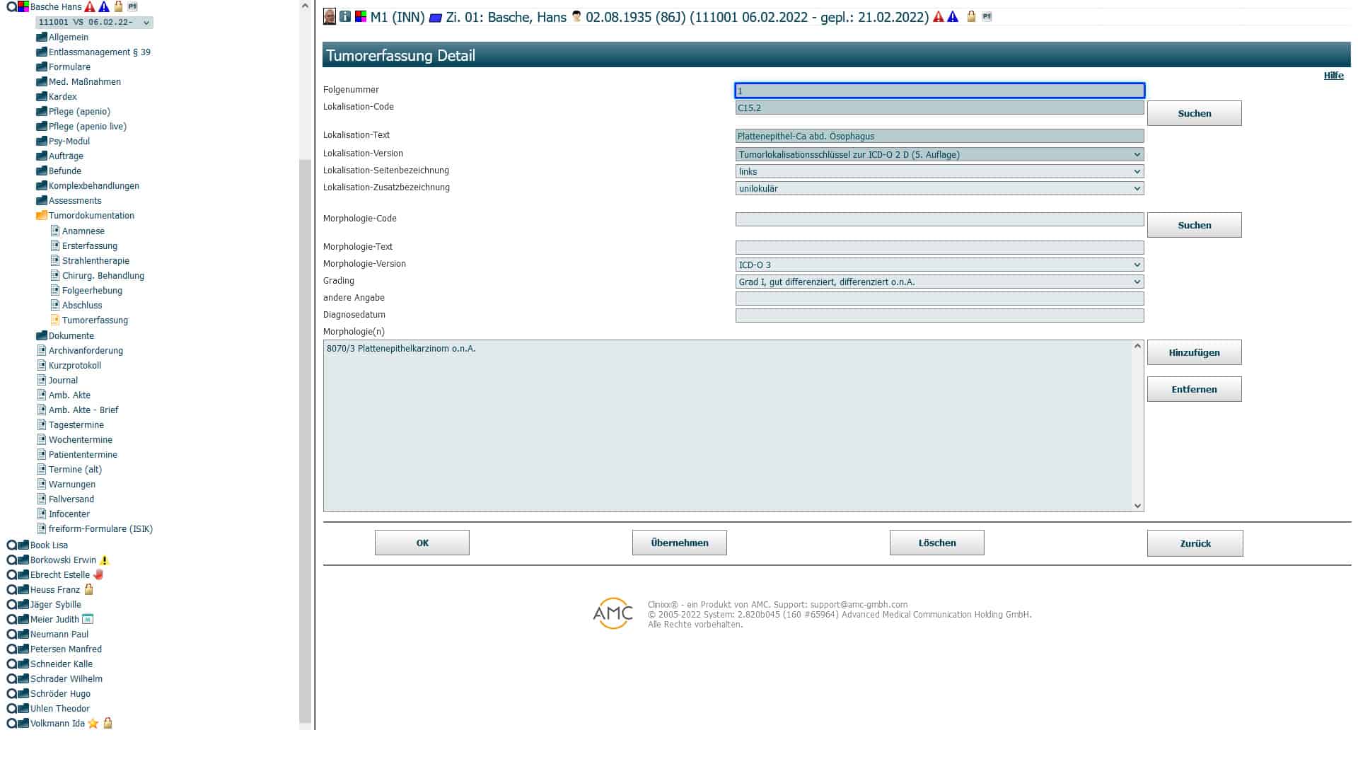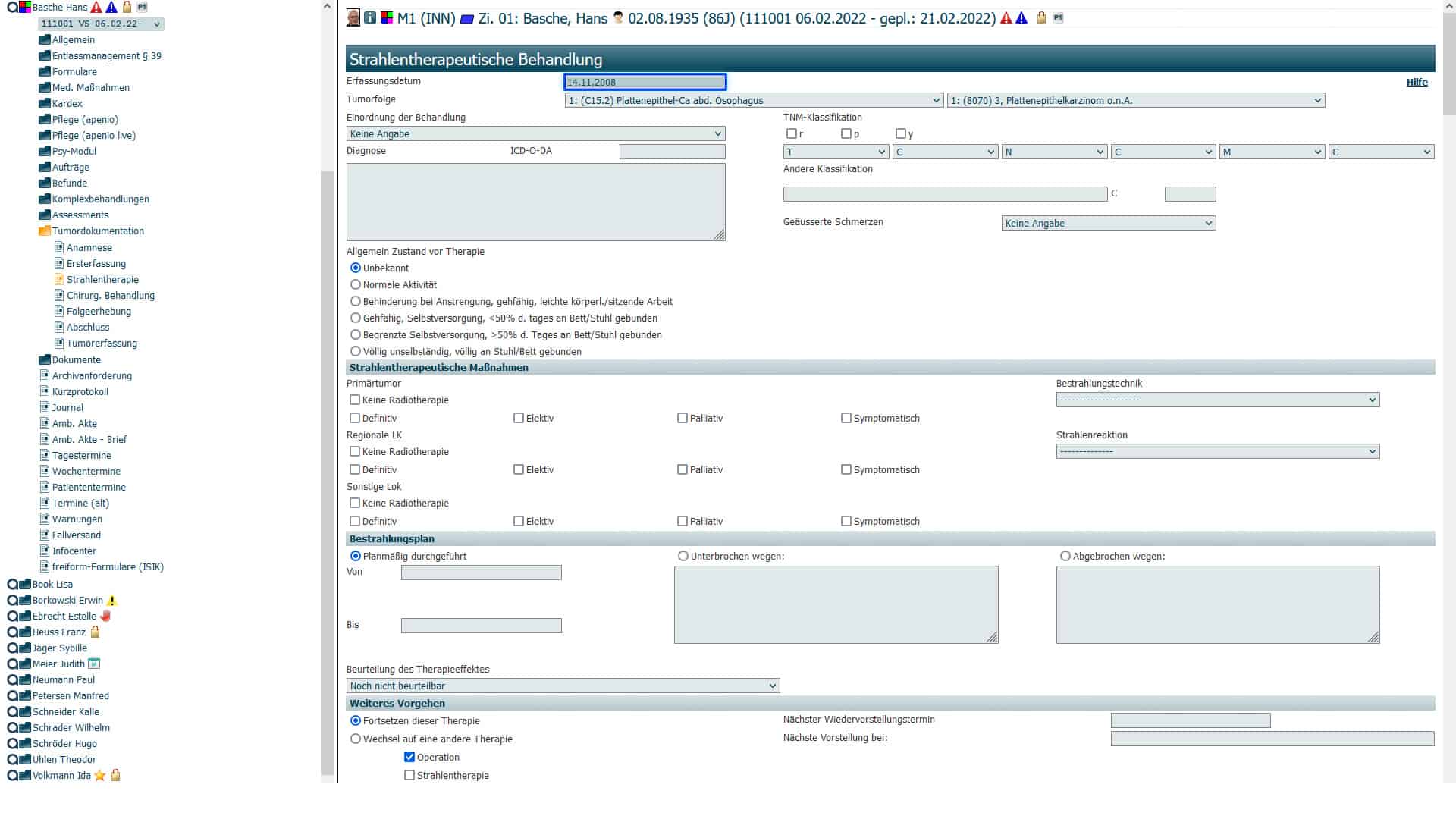• Registration of patients for individually configurable tumor conferences